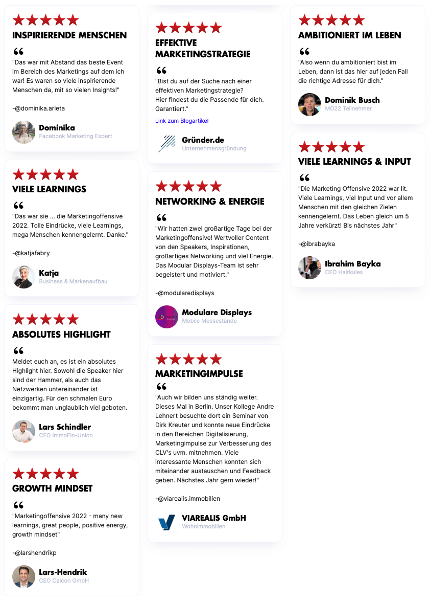 Das sagen Teilnehmer über ihre Erfahrungen auf der Marketingoffensive: